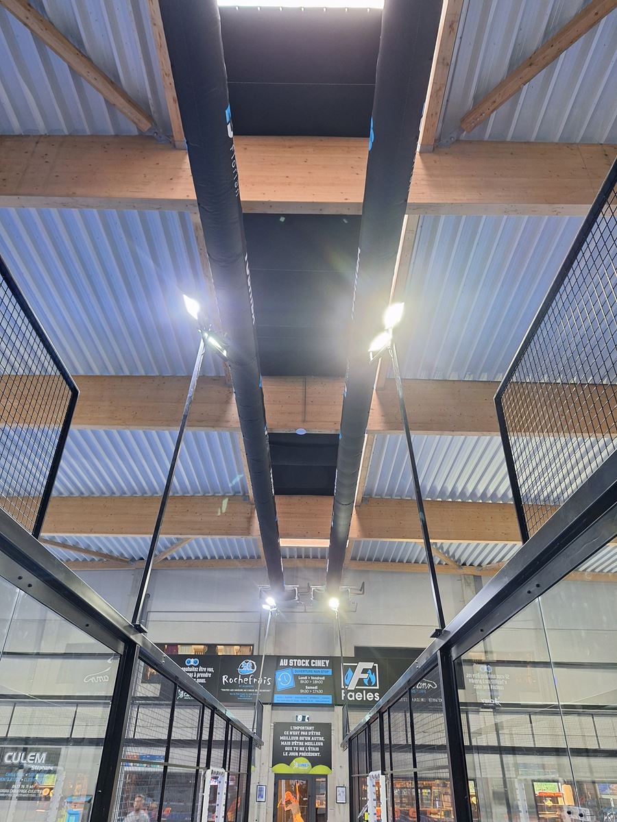 Le club de padel de Ciney, à Namur, dispose de 2 courts couverts. Afin d'offrir aux athlètes une ventilation et une température parfaites, le club de padel a choisi les gaines textiles Prihoda.