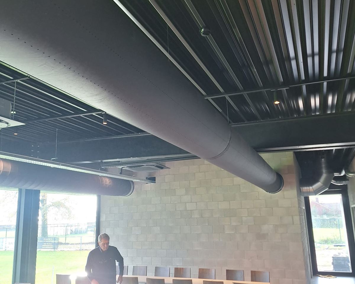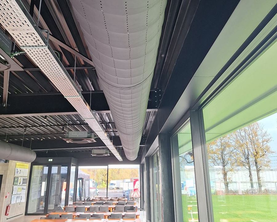 Un clima interno piacevole e salubre è essenziale, anche negli ambienti sportivi. Nella mensa del club calcistico KVV Duffel è stato recentemente realizzato un nuovo sistema di ventilazione da De Smedt HVAC, con la scelta dei canali tessili Prihoda. Questa soluzione combina prestazioni tecniche con un design pulito e moderno.